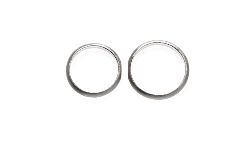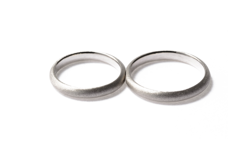 2本のリングの平らにカットされた部分をお互いにくっつける事でぴったりと寄り添うデザイン